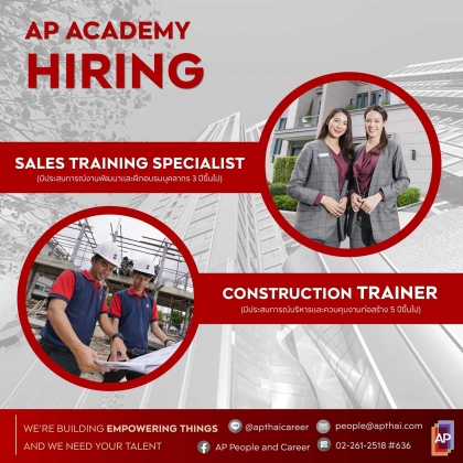 AP Academy เปิดรับสมัคร 𝐒𝐚𝐥𝐞𝐬 𝐓𝐫𝐚𝐢𝐧𝐢𝐧𝐠 𝐒𝐩𝐞𝐜𝐢𝐚𝐥𝐢𝐬𝐭 และ 𝐂𝐨𝐧𝐬𝐭𝐫𝐮𝐜𝐭𝐢𝐨𝐧 𝐓𝐫𝐚𝐢𝐧𝐞𝐫