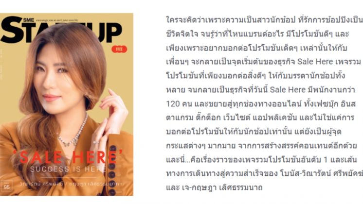 Sale Here เริ่มจากเพียงบอกต่อโปรโมชันเด็ด ปัจจุบันมีพนักงาน 120 คน ขยายทุกช่องทางออนไลน์ และสร้างกระแสคอนเทนต์มากมาย