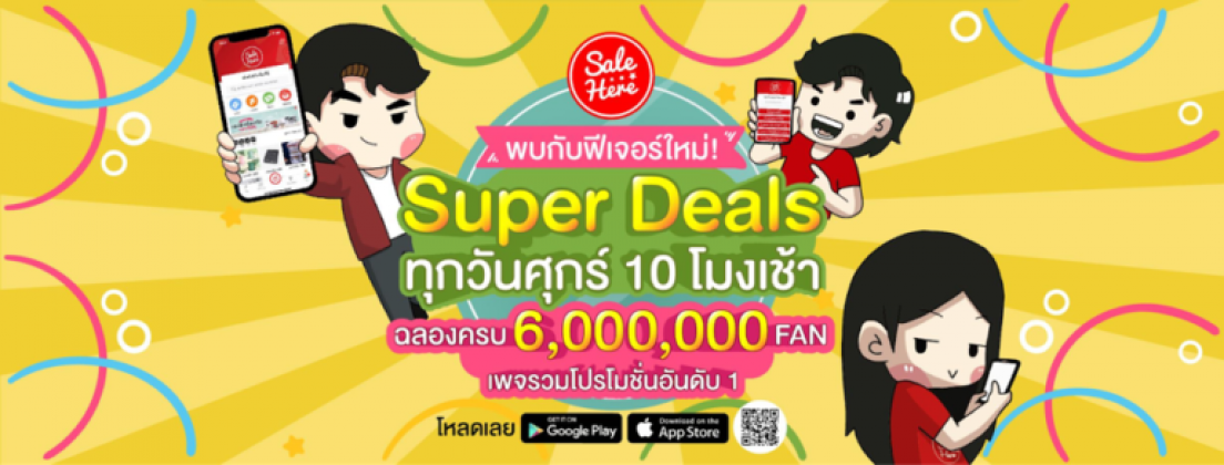 Sale Here เปิดฟีเจอร์ Super Deals ทุกวันศุกร์ 10 โมงเช้า รวมดีลเด็ด โปรปัง สินค้าจากแบรนด์ชั้นนำทั่วไทย ช้อปกันจุใจไม่ควรพลาด